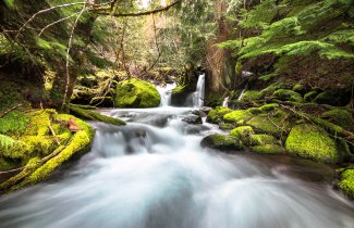 McRae Creek flows through the lush and mossy HJ Andrews Experimental Forest in central Oregon.